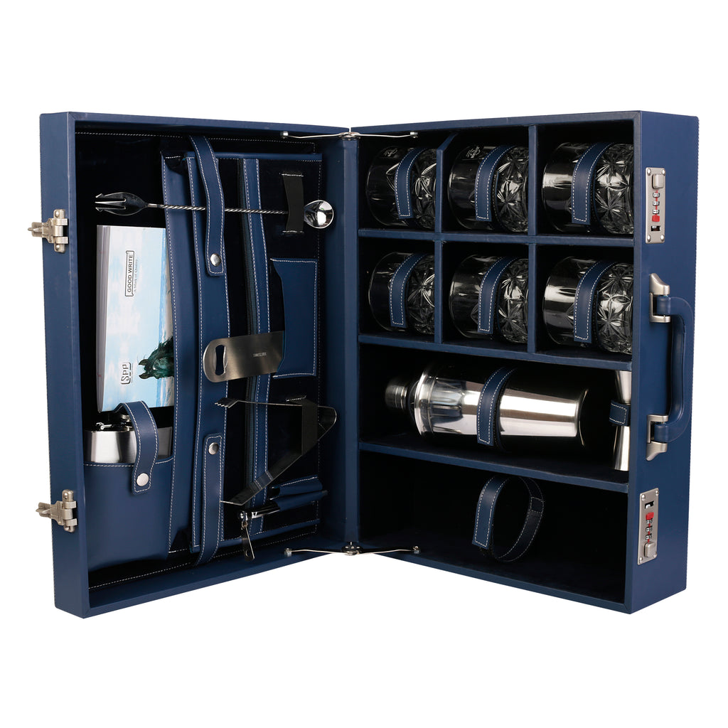 Anything & Everything Leatherette Briefcase Bar Set | Portable Bar Set | Travel Bar Set | Bar Tool Set | Bar Box (Blue & Blue)